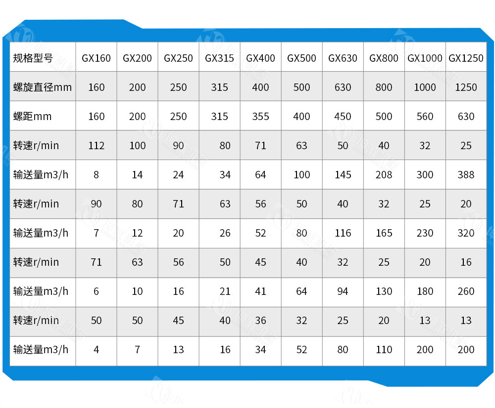 1、垂直螺旋輸送機可按下面的經(jīng)驗公式進(jìn)行計算 Q=8.0073n (m3/n) 式中:Q=輸送量(m3/n); D=螺旋直徑(m); n=螺旋轉(zhuǎn)速(r/min )。